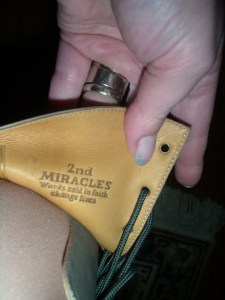 When I put the boots on for the first time and saw this stamped inside, I knew they were fated to be a writer’s boots. Well, fated to be THIS writer’s boots. “Words said in faith change lives.” How true that is. Saying words in faith can change your own life, let alone how the words impact those hearing them. These boots are empowering. I feel like I can change the world when I lace them up. (and up. and up. and up. These are not the footwear for days when you’re running late for work!).