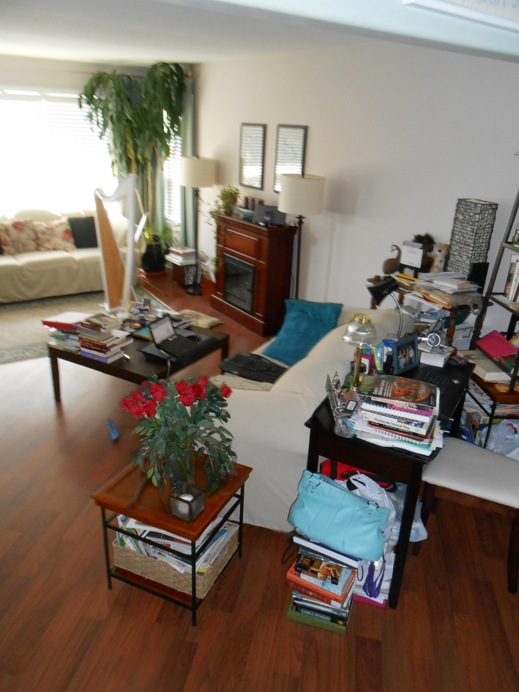 You know, I think there are probably over 100 books in the area shown in this shot? Wild. This is my writing zone. Theoretically, I sit at the desk, but usually I am lying on the couch. Theoretically, I use the ergonomic keyboard, but usually I just use the mini-keyboard on the notebook computer, which is probably not good for hand health. One of my favourite places to write is (seriously) the bath tub. Why I can focus so well there, I have no idea. Computer well away from water, waterproof keyboard on my knees, I don’t have to see what I type, and I get huge chunks of story.