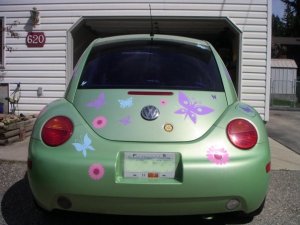 Sheila was quickly adorned with decals of butterflies and flowers. She became a fixture in town. Everyone knew when I was at an event. People spotted me on highways and wrote to ask where I was going. Everyone smiled when they saw her (except the jerk who keyed her in the parking lot of the Delta South Hotel in Calgary or the people whose friends punched them because they didn’t read the sign that she is a “HUG BUG-no punches allowed!” So many little girls eyes lit up as they whispered, “I LOVE YOUR CAR!” She got 1000 km on a tank. I could drive to Calgary and back to the Shuswap on a single tank! What a gal!